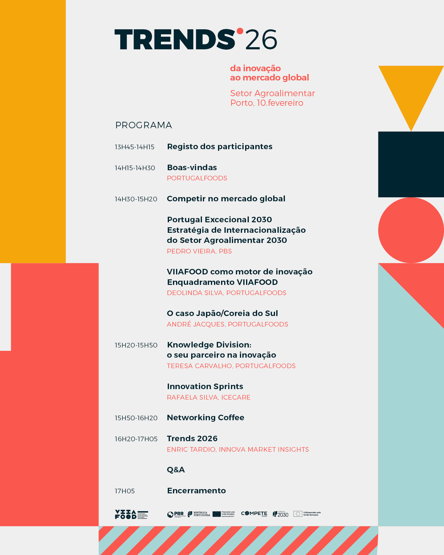 Participe no TRENDS 2026, no próximo dia 10 de fevereiro, a partir das 13h45, na Fundação Dr. António Cupertino de Miranda, no Porto. Este será um momento-chave para o setor, com a apresentação das Tendências de Inovação para o Setor Agroalimentar, o lançamento da Estratégia de Internacionalização do Setor Agroalimentar 2025–2030, integrada no Portugal Excecional 2030, e a partilha das ações de internacionalização desenvolvidas no âmbito da Agenda VIIAFOOD, com destaque para o caso Japão/Coreia do Sul.